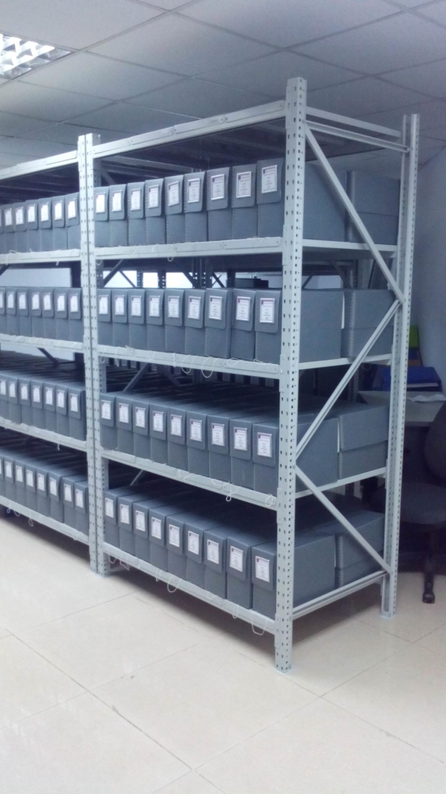 Shelves document storage 3 floors 2m high, 2m long, 0.6m deep, 3 floors, load capacity 250-300kg/floor.